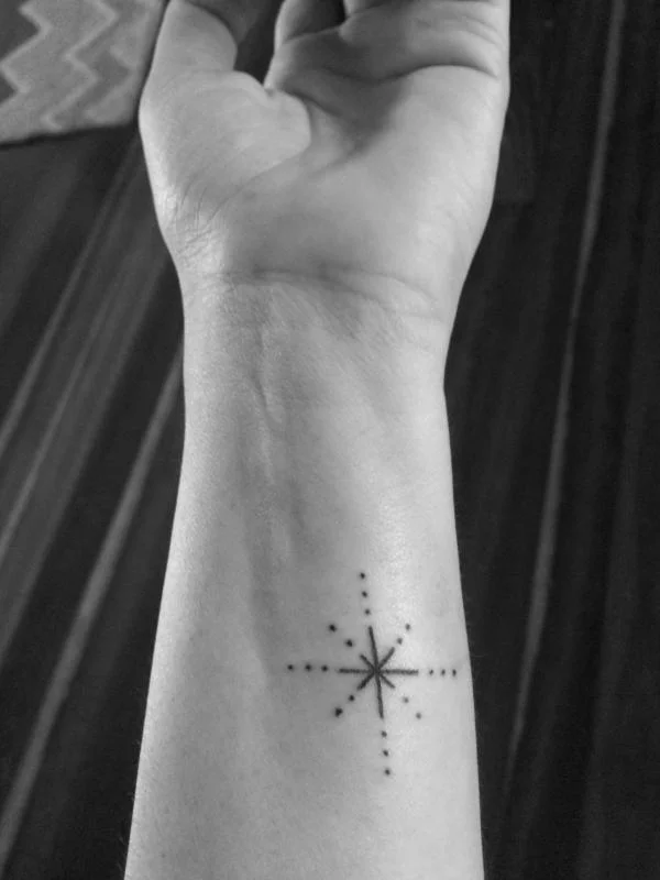 Ive been thinking of this for a while and was so happy to get it done. I've never had a tattoo and I'm not the skull and crossbones type either. I'd chosen a simple star design made of lines and dots. Delicate and simple. I felt it reflected me well. I laughed with the big, burly, tattoo covered, bearded man who did my tat who seemed like a gentle giant about how technical and difficult my little tattoo was (that's sarcasm btw). It might only be small but to me it is mighty.