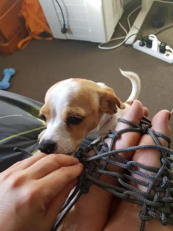 One thing I love incorporating with my ties is weaving. It makes it looks so pretty. Granted todays tie is a bit messy but thats the idea of this challenge. To explore and refine. Im using a nylon rope. I dont recommend this type of rope as it is "slippery" meaning knots can move and it also coils and twists as you pull it through. BUT I bought this rope ages ago and it is only about 3mm I beleive. I find thicker ropes for my feet are "too big to fit in here" (bonus points for movie reference if you know it). Its also cheap and easy to find at any hardware store. Additional though one thing I love is exploring different textures of different materials on my skin. This one can (and has in the past) caused rope burn but right before that point its enjoyable.
