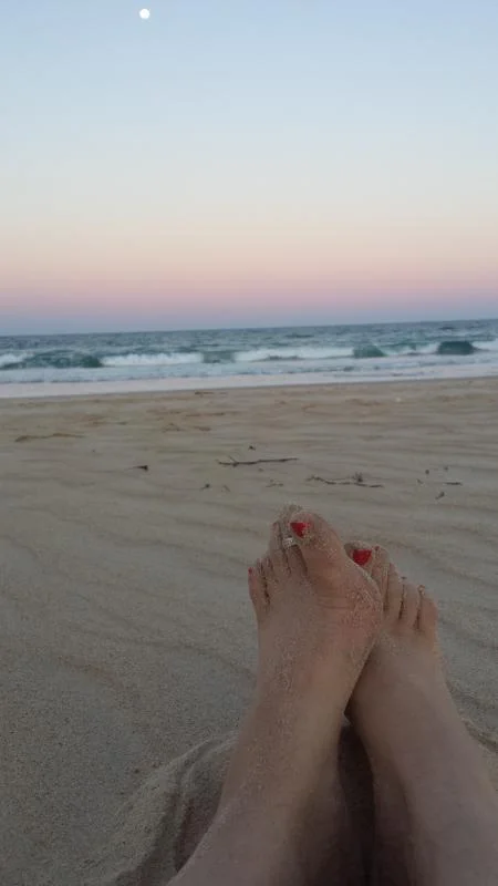 One of my most favorite things is sitting in silence, watching the waves roll in as I sit on the sand. Especially on dusk. When I get to watch the sky turn from bright blue to pinks and purples. To then bath me in Navy and darkness as I follow the moons light back to my destination. Watching its reflecting dance over the waves and shine on the newly wet sand.
