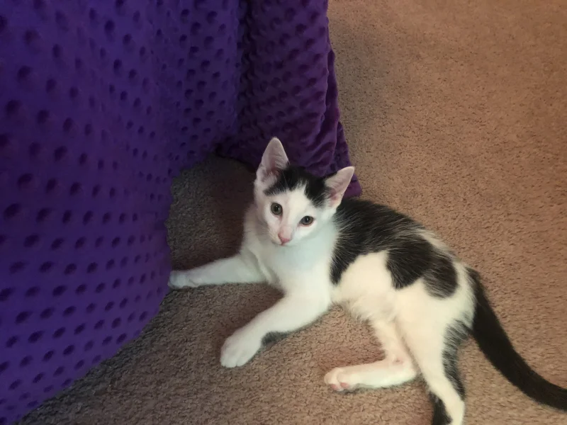 A little over nine weeks ago, one of the stray cats that we took care of decided to have her litter on the back patio. It was a difficult birth, one that actually required the last kitten to be pulled out by hand.