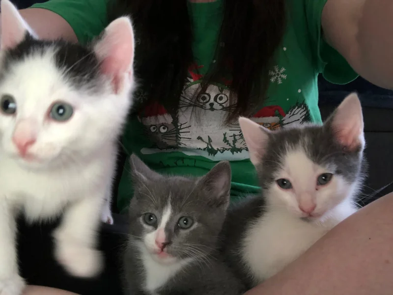 The good Lord above, my brilliant mother, and the internet came to the rescue. My eyeballs took in as much information as my mind would allow, and off I went, driving above the speed limit (only slightly!) to the pet store to get supplies: feeding bottles, powdered formula, gloves, baby wipes, etc.. We put together a humble bed for them. At first, it was just a cardboard box with an old towel covering a heating pad. Next was going through the adorable—yet stressful—learning curve on how to feed and burp a neonatal kitten who is fresh out of the oven. I can tell you that I never found burping so cute in my life.
