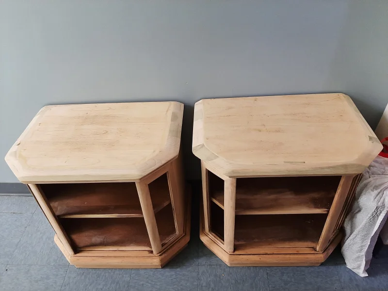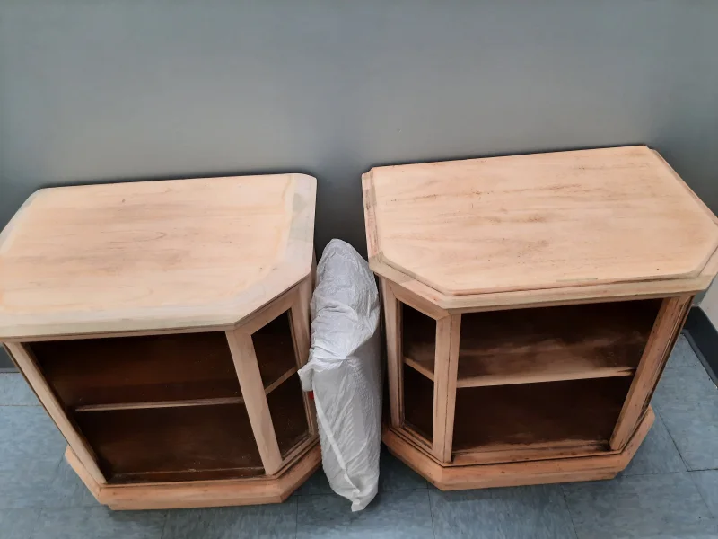 After working on this for a few weeks now, I just need to stain (use as a primer) before painting. Thinking of painting them black with a matte or satin finish. The inside the colors of a night sky with stars. Maybe put my crystal collection in them. I'm so happy to be back in my happy place :)