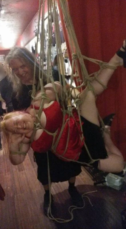A good rigger, like this awesome fellow, can safely suspend us larger folks, too! I'd love to see some nice detailed books that show how to tie different body types. Meanwhile, the bay area is blessed to have people who are highly skilled and happy to give this experience to many types of people.