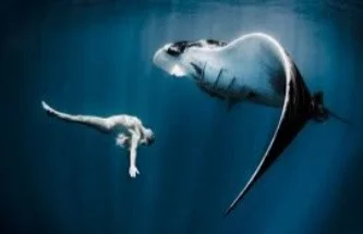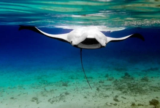 As the Manaray approachede me, I had noticed, that he was on his back with his stomach gliding along the ice. He came right up underneath me.