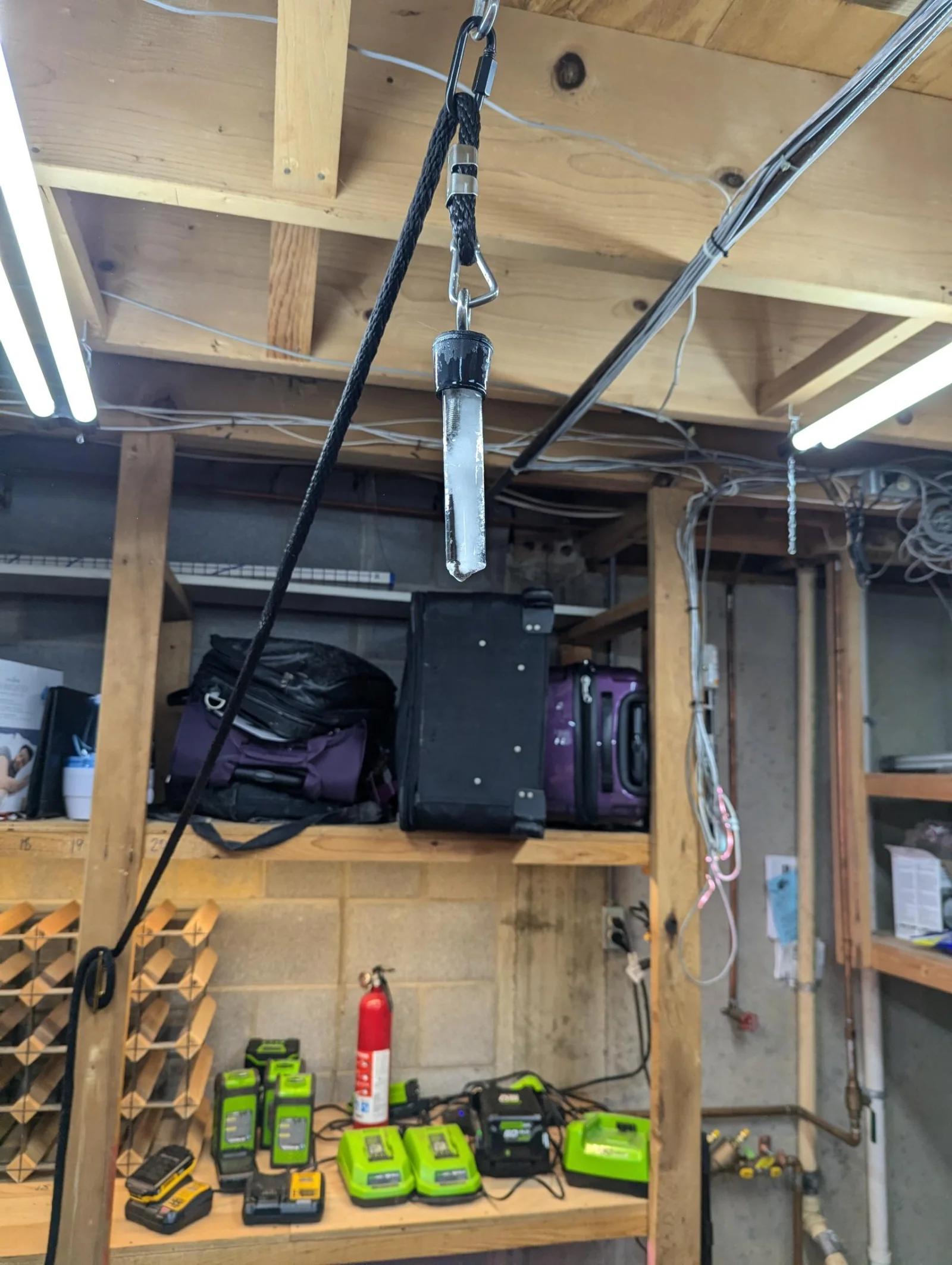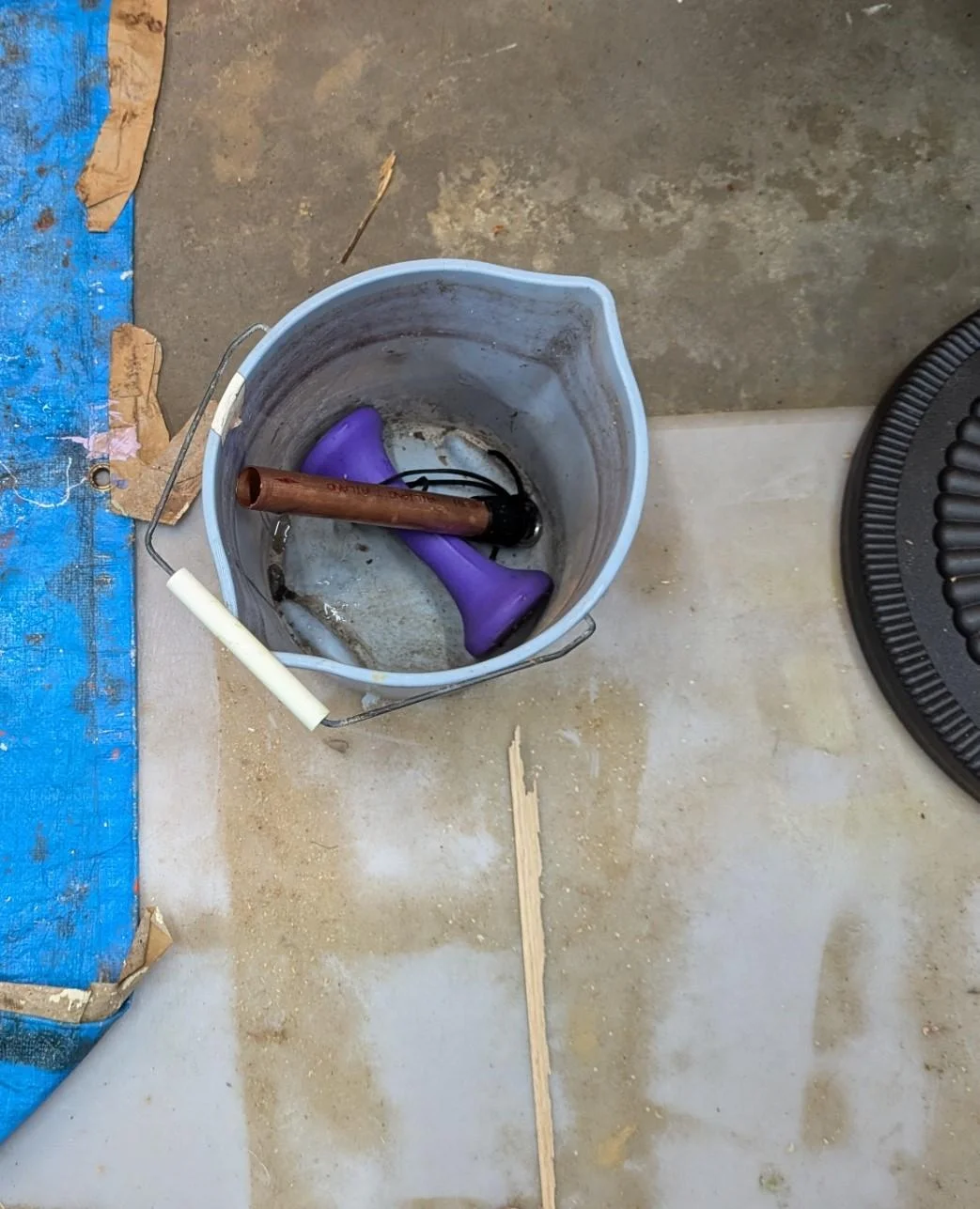 One assembled, it was filled with tap water. I was rather surprised and found no leaks and placed the device in the freezer for two days (probably overly long but the 4th was a busy day). This morning I got it out and hung it up in my work shop with a bucket below to hopefully everything when the ice gave out: