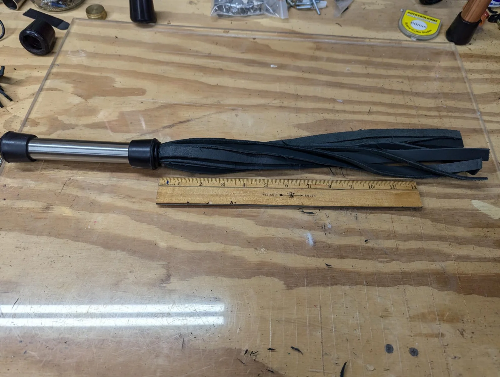 The falls are 18" (overall) yak hide. The yak has a weight of about 4 oz (1 oz is 1/64 "), so it is fairly heavy, comparatively speaking. Knowing this, I was planning on only using 13 falls, but they were too thick for the tube and could only glue in 12.
