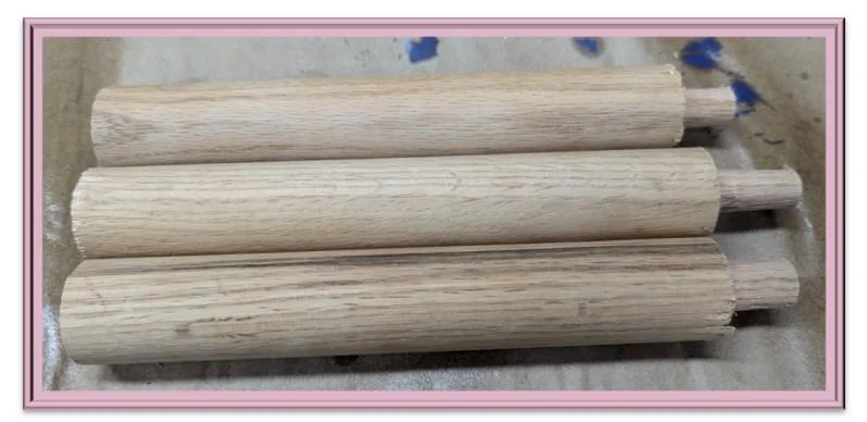 What you are looking at is 1.25 inch Oak dowel where I reduced about an inch of it to .5 inch or so.