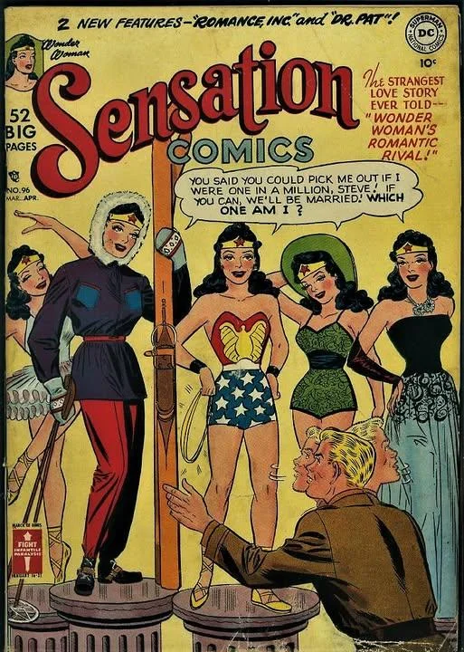 But this cover of Sensation Comics #96 came across my bluesky (if you are still on twitter, skip over to bluesky you won't regret it) and the first thing I thought was "This has to be Steve Trevor's nightly wet dream"