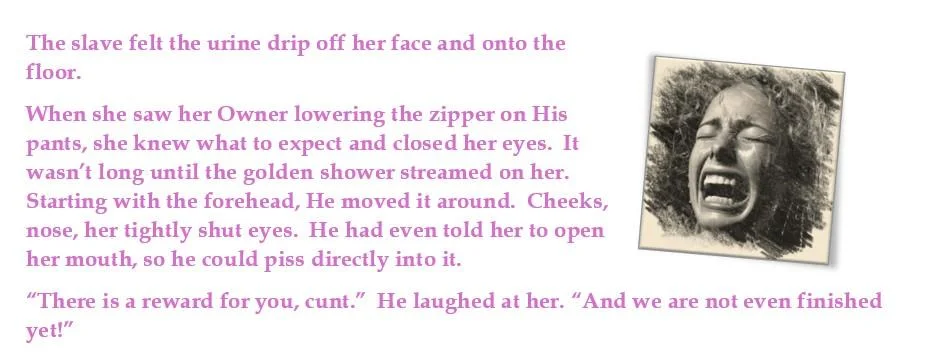 Pain suddenly erupted from her right ass cheek. Jilly’s head was dragged back by the hair and was forced to look into the mirror again. The word “Count” appeared all at once.