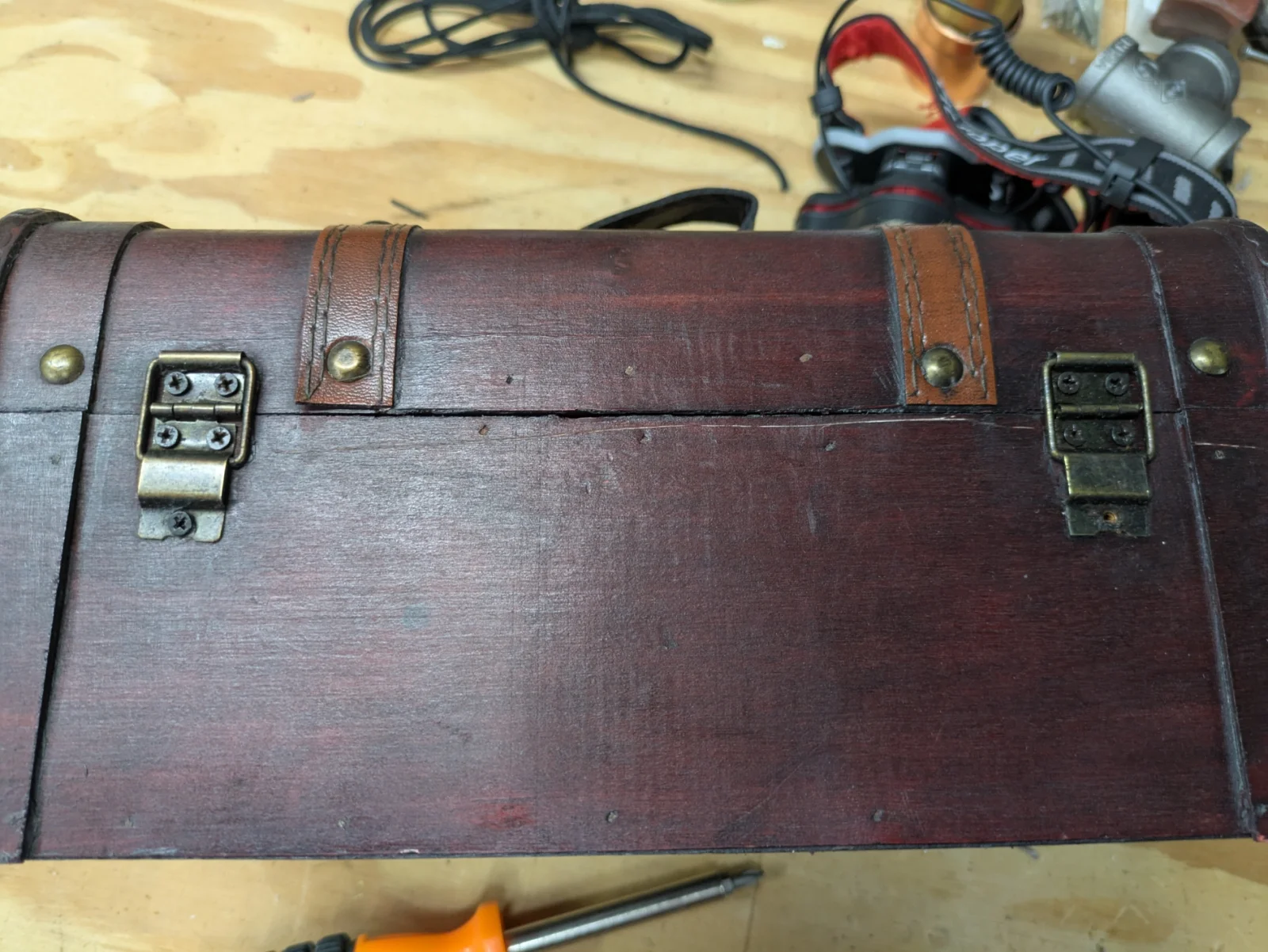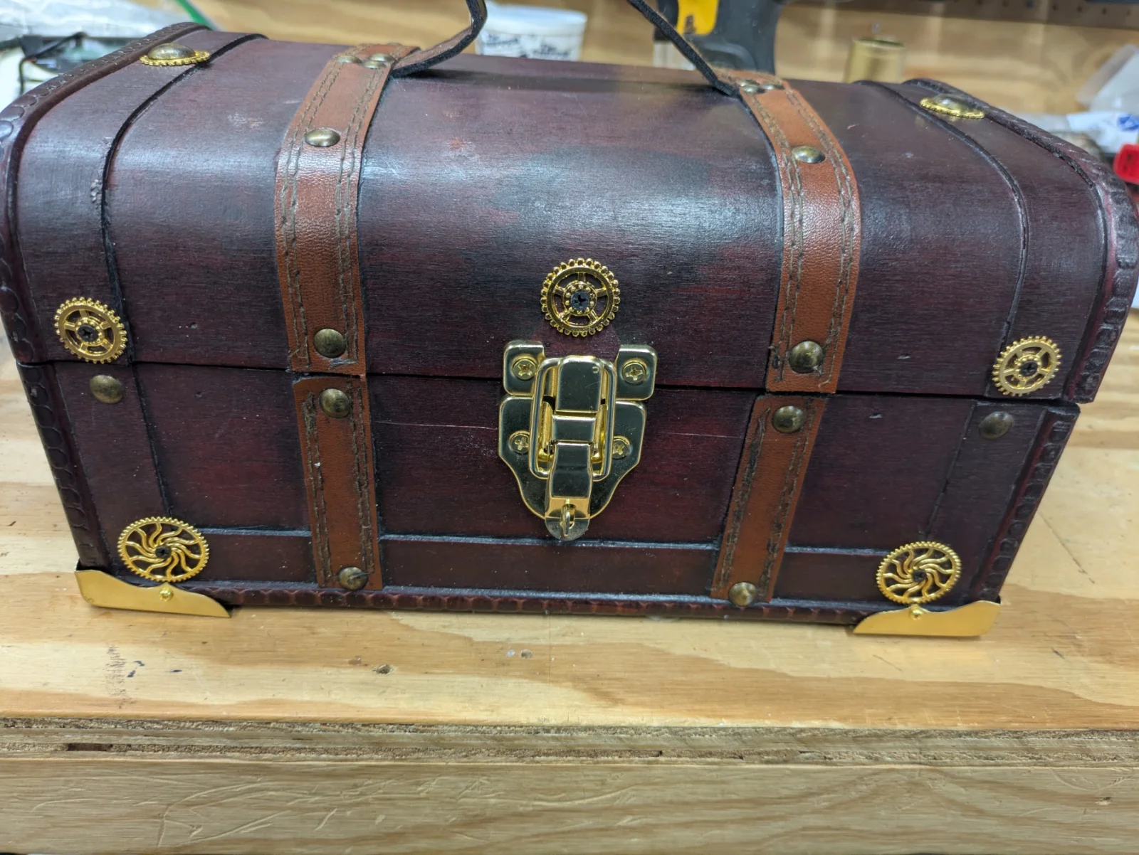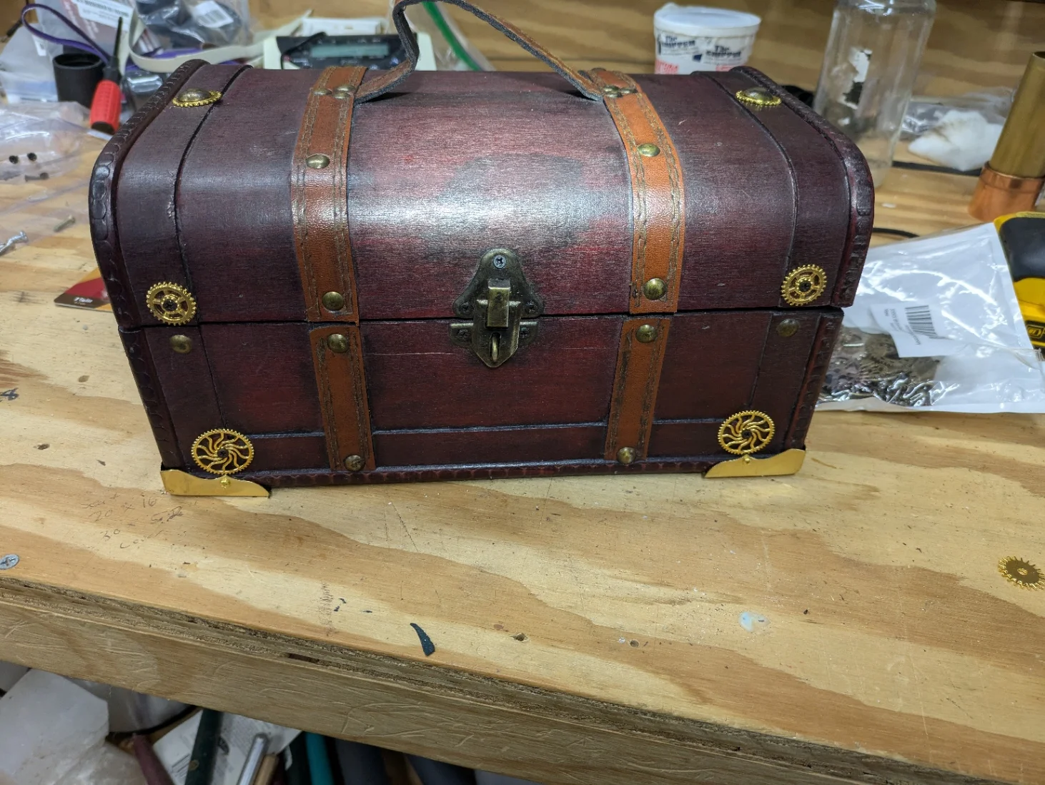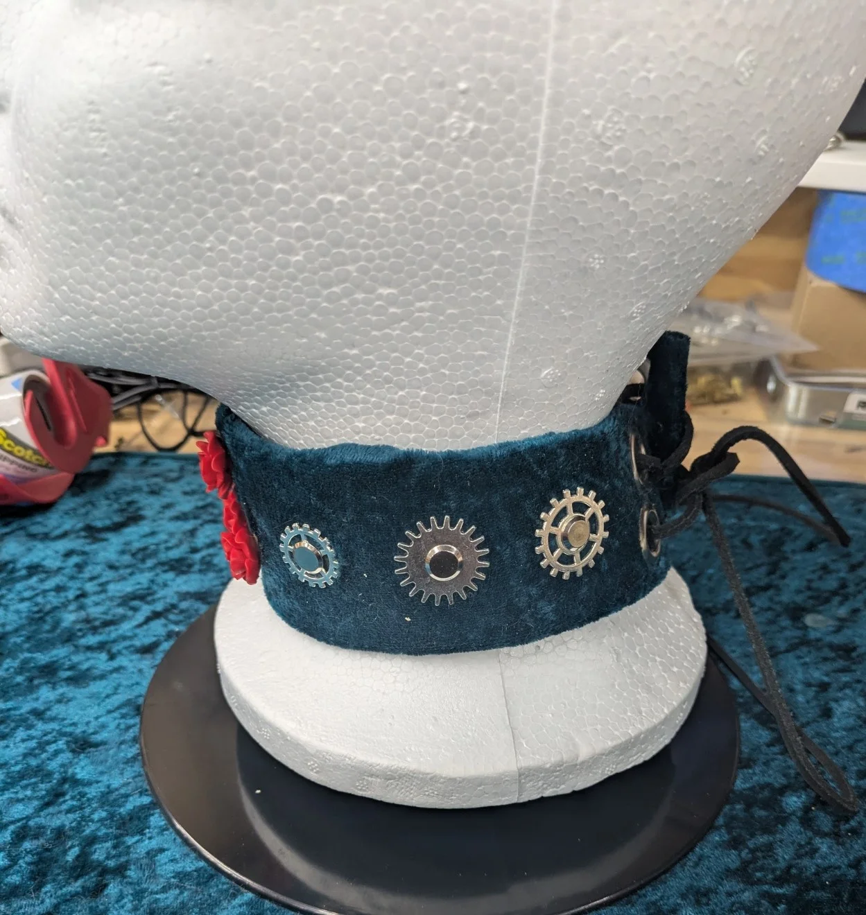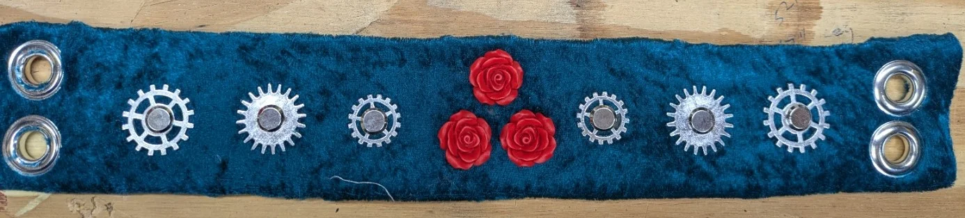 I decided to see if I could do the same kind of idea with the leather cuffs I first put on. A couple of fender washers and, Voilà: