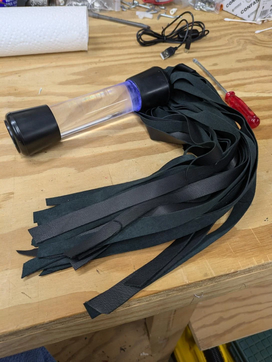 Recently, I had a local lifestyle friend wanting to sell off some of his excess things. So looking around, I found a set of leather/vinyl wrist and ankle cuffs. He also had this nifty set of slim shackles. Also wrist and ankles. So me being me, my tinker brain started winding and thought they would go well with my interrogation chair.