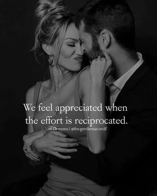 We grow to love what we take care of. The more time, energy and love that we put into something, the more that we appreciate it and that has never been more true than the love that we put into another person. We thrive when loved and feel deprived without it. Love doesn't just grow on it's own, it takes effort and when that effort is reciprocated, then the love becomes stronger, deeper and more powerful than the lovers themselves! One of the greatest gifts that you can give someone is showing them how much they are appreciated by returning the love and kindness that they show you.