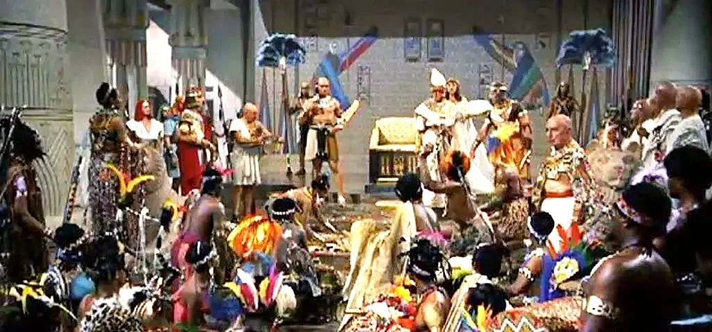 The photo below is from Cecil B. DeMille's 1956 “The Ten Commandments,” during the scene where Pharaoh receives many gifts and offerings.