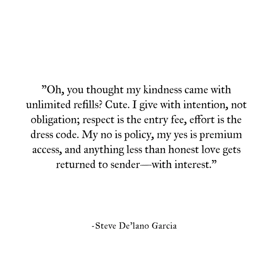 I offer grace, not permission to repeat the same harm. I can forgive what I understand, but I will not fold myself into a smaller shape so that your comfort remains undisturbed. If you want softness from me, bring respect. If you want my time, come with truth. If you want access, show up with care.