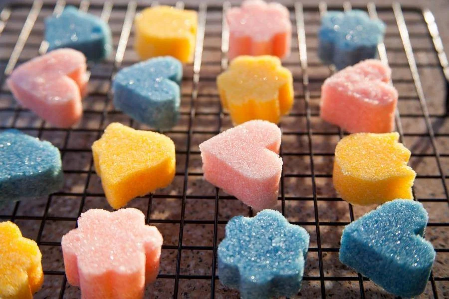 Sugar cubes can be made simply by the small granules of sugar and time! Piece by piece combined with the right amount water develops into a sandy mixture. Not too much water tho, as it will dissolve the sugar and not form. This sandy mixture is then placed in a mold. Within time, the sugar sand mixture will cure and be released into a solid sugar cube the shape of the mold. It isn’t rocket science.