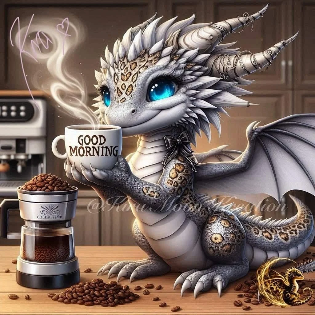 on snowy and icy mornings I too would want to slip into a giant cup of coffee and let the snow fall all around me. But no, I am not a dragon who happens to have the tub sized mug to submerge into.