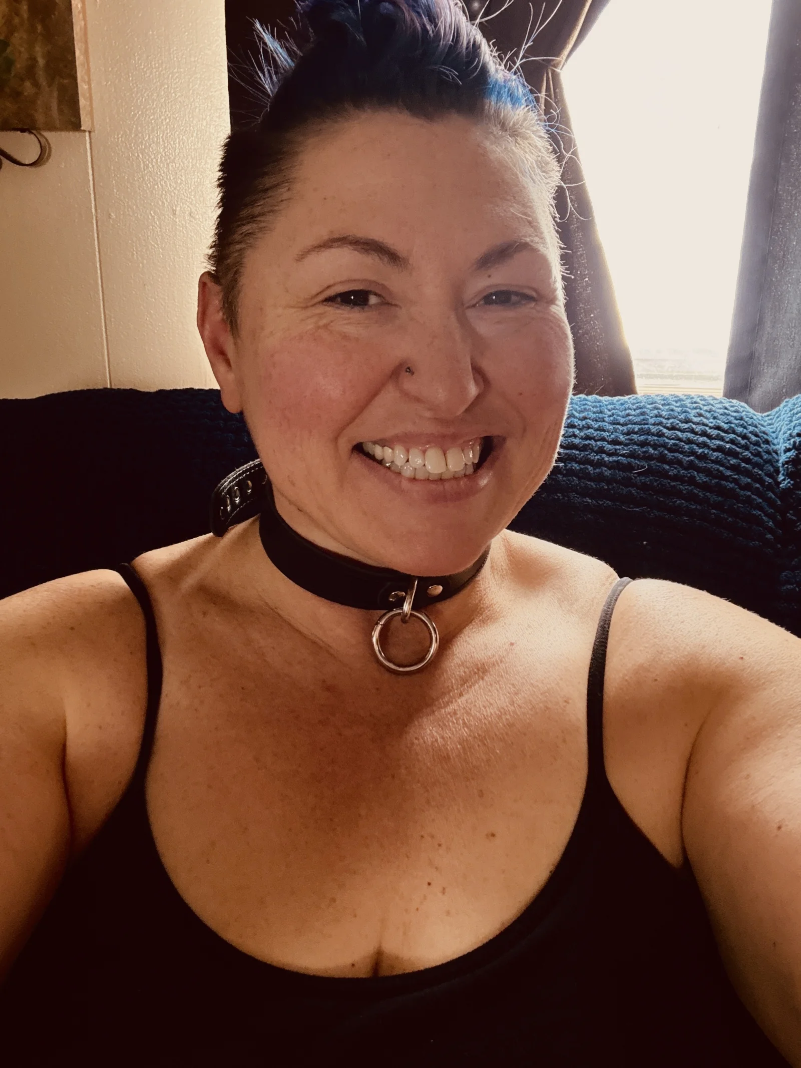 I was sitting on the couch taking this selfie and saw my traps! I have definition again. oh I cant wait until the chest starts to define and then my shoulders, and of course my legs. I have been consistent with my work outs and it is finally showing. I lift between 20-30 min per day. Not full balls to the walls yet, just slow and steady to get back into the swing of things. I am more focused now, and able to really commit to getting back into heavy lifting.