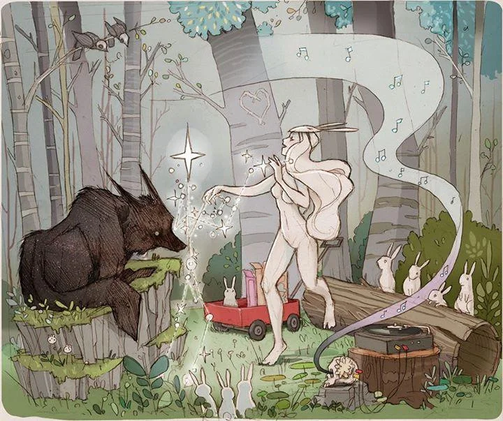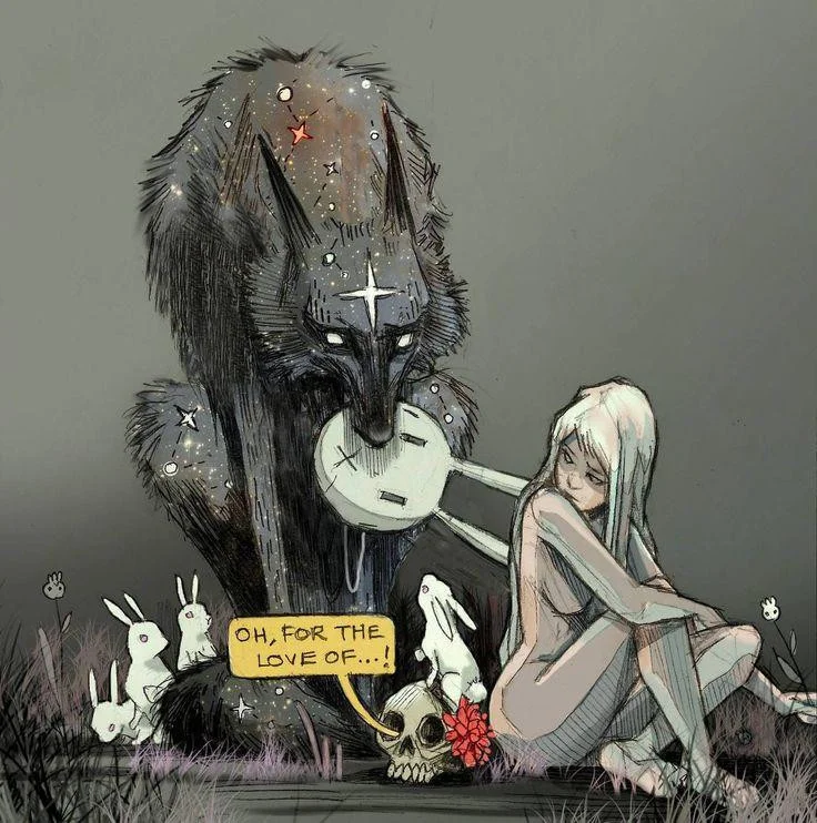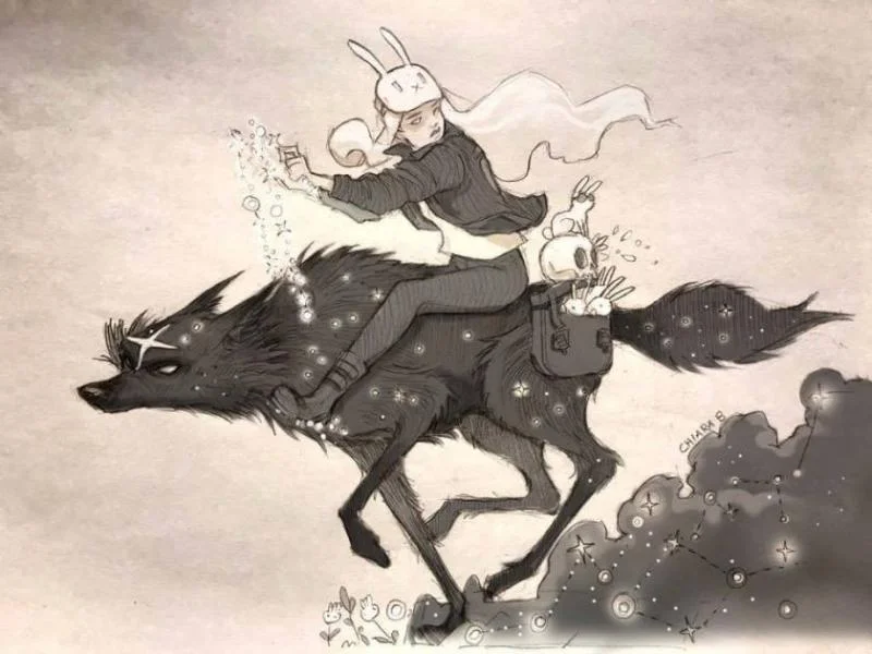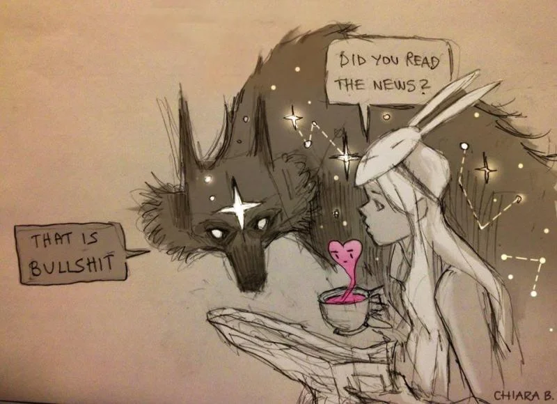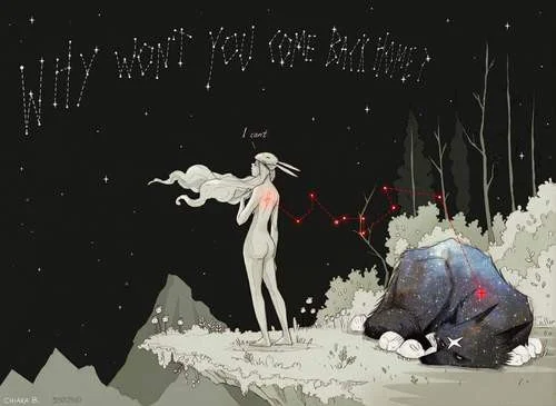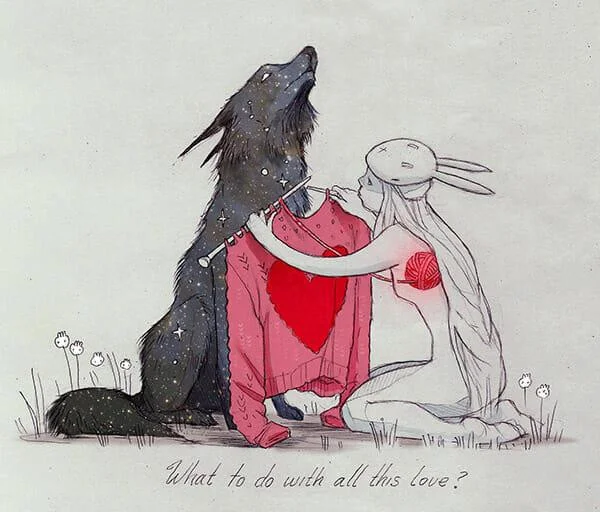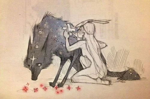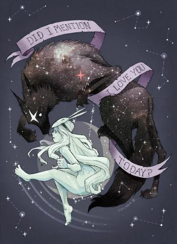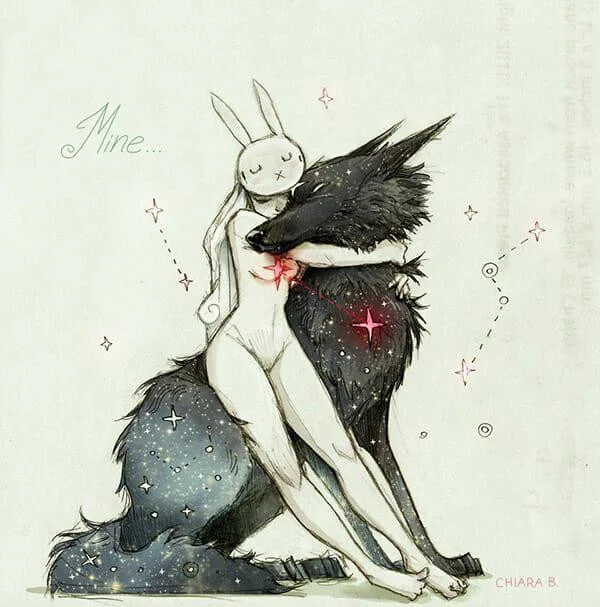 I've recently discovered the amazing work of Chiara Bautista. Her dark, mysterious, and poetic illustrations speak to me on a level most would find weird. The collection that stopped me in my tracks is the star wolf and the bunny girl. They were such a shockingly accurate reflection of Sir and I that I became immediately obsessed with finding and ogling every sketch in the collection.
