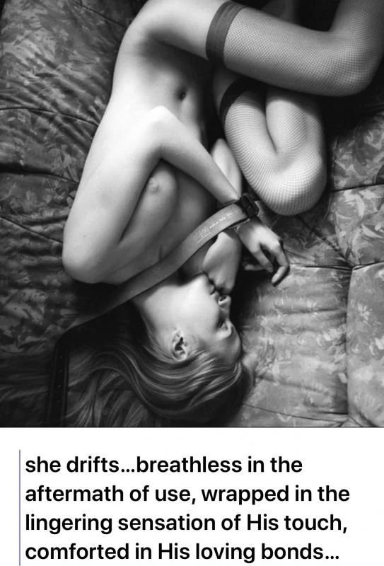 It doesn’t matter how many times I have seen this, felt this, I will always marvel at the indescribable beauty of a submissive in this state. A time when the connection, the gift of trust is at its peak. The moment you know your submissive is given you her all ... through her gift you were able to break the chains that bound her her .
