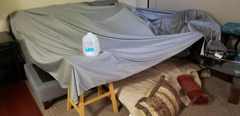My Dom and I made careful preparations, and built an amazing pillow fort! (My first one in a few years!)
