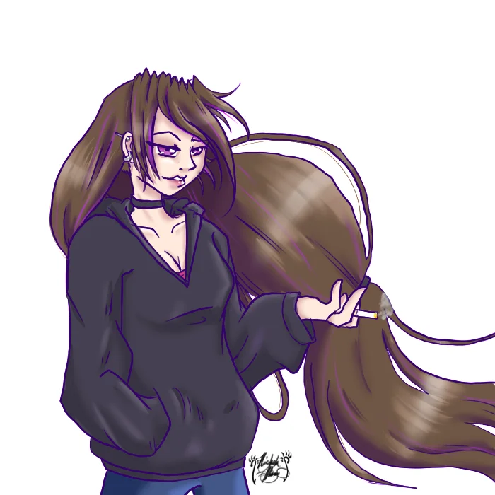 A roleplay character of mine named Nuri - She's a pyromancer, and usually is found running with her street gang. (What? Even superhumans make crappy decisions.)