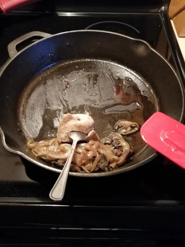 That "sauce" you see... Yeah that's straight butter and coconut oil. When I was eating my dinner I actually wound up getting 3 small spoonfuls of just butter. That may sounds gross but cooking in some onion and mushrooms with a bit of chicken seared from the pan... It was some of the tastiest bites I have had in a long time. I did manage to add a tiny piece of mushroom to the butter on the fourth bite haha.