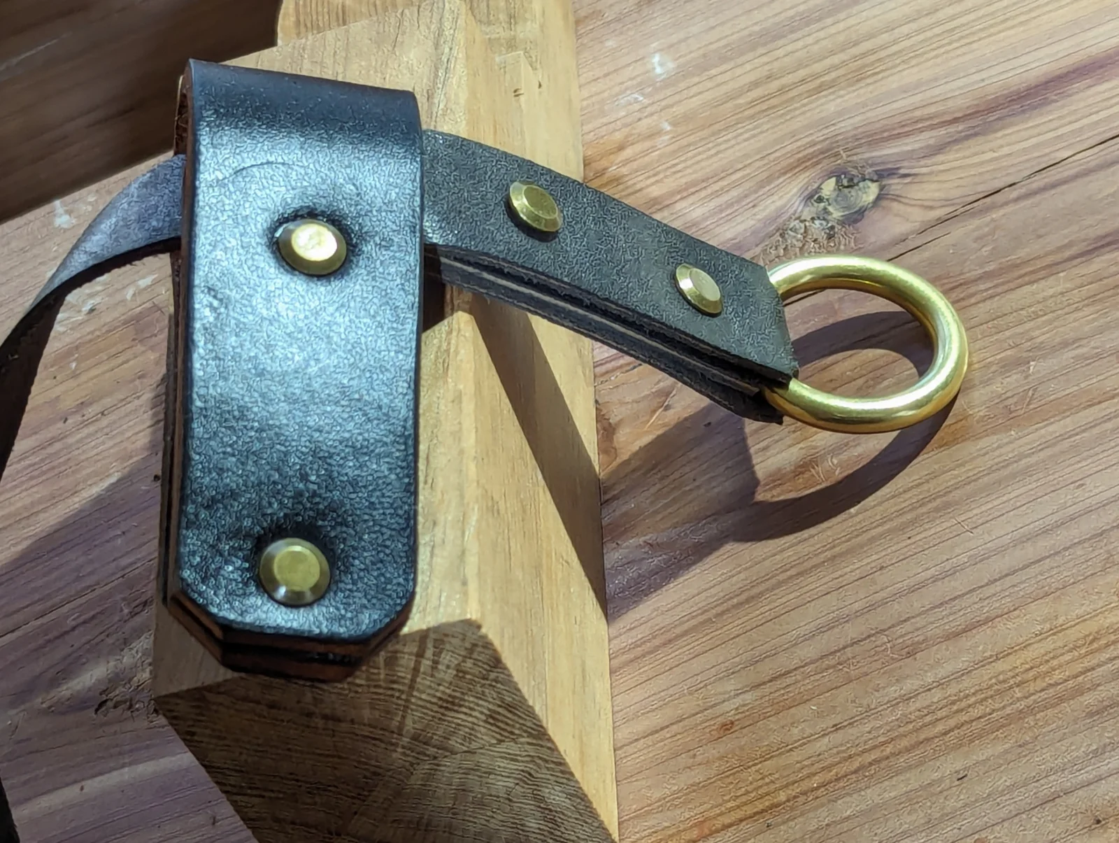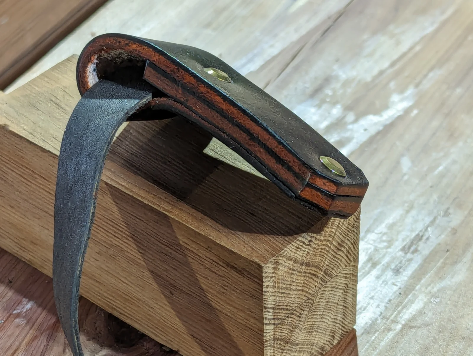 The Studs & rivets are actually special screws, made from solid brass - I like the Antique Brass finish the best. For contrast (it's a test, not a final piece!), I left the edges of the thin bands unfinished, unburnished, and not-bevelled - which is what you see on -most- leather goods. To me, that simple look is one of much lower quality. I far prefer the image above for edge style.