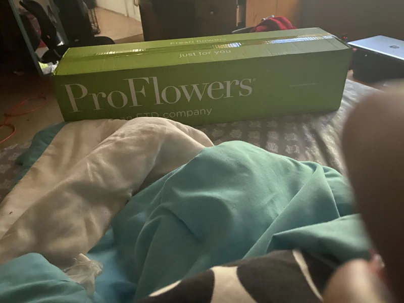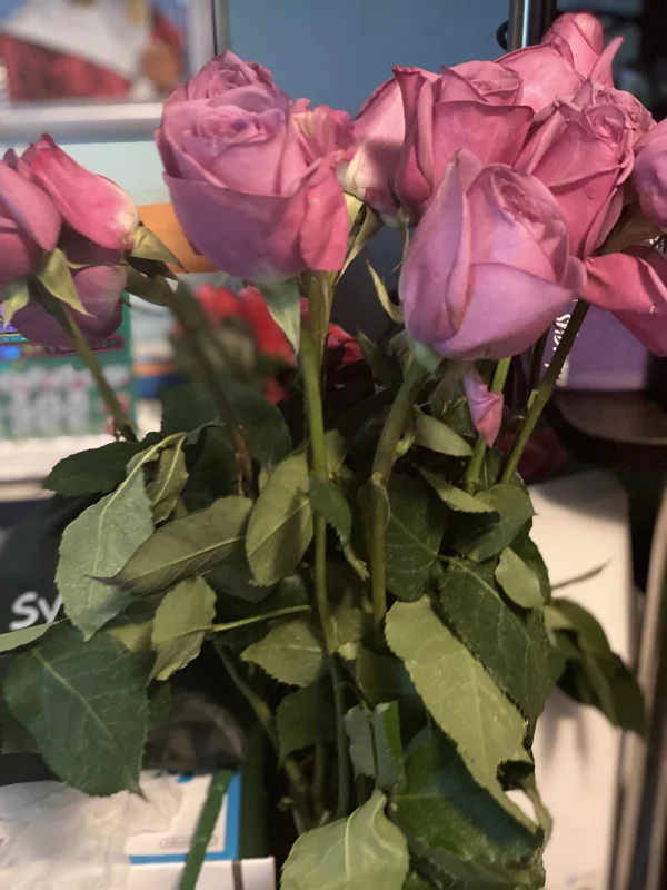I’m am so happy I can barely contain it. I was taking a nap and hear my door bell ring which causes my dog to go bananas. So I wake up and go to the front I’m expecting a book series from Him so I assume that’s what it is, usually the mail man doesn’t ring the door bell but whatever. I go to the door and see a big green box and I’m like huh? Mind you I just woke up from a nap it takes me a minute to get myself together. So I assume it’s for my mom or sister who’s back living home but has a boyfriend. I look for a label to see who it’s addressed to and low and behold it’s me. I’m like huh? I open it and it’s beautiful roses with a lovely note from Him and I glow so brightly. Not only have I never gotten flowers before but they are pink roses.